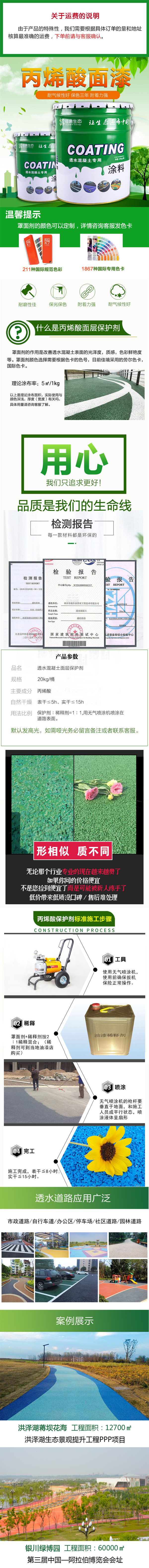 彩色透水混凝土施工面層的色彩需要通過噴涂面層罩面漆來實(shí)現(xiàn),佳境生態(tài)提供的罩面漆情況如下,歡迎電話咨詢