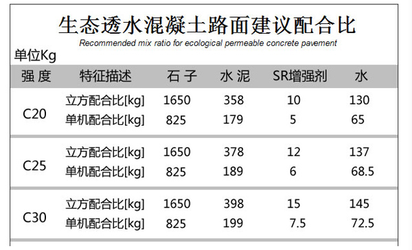 用法:將水泥、石子、透水砼增強(qiáng)劑、水按比例加入攪拌機(jī)中正常攪拌。